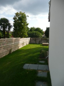 brise vue, gazon et dalles d’ardoise
